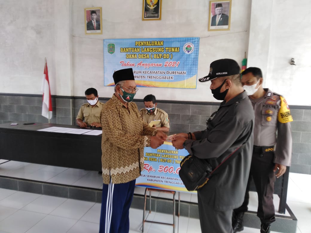 Pada Tanggal 22 Juni pemerintah Desa Semarum Telah Melaksanakan Penyaluran BLT-DD Bulan April Sebagaimana Sesuai dengan KPM yang telah di ten tukan dan setelah bulan april ini selesai ada pergantian penerima BLT-DD Karena KPM sebelumnya meninggal Dunia dan di gantikan yang lain sesuai musdesus dan penerima tersebut layak menerima.dalam penyaluran tersebut tiga pilar datang untuk mengikuti penyaluran sehingga semua berjalan dengan lancar dan tidak ada kendalam dalam penyaluran tersebut,antusias warga juga semangat sehingga hanya yang sakit dan tidak bisa datang yang di antar kerumah masing2