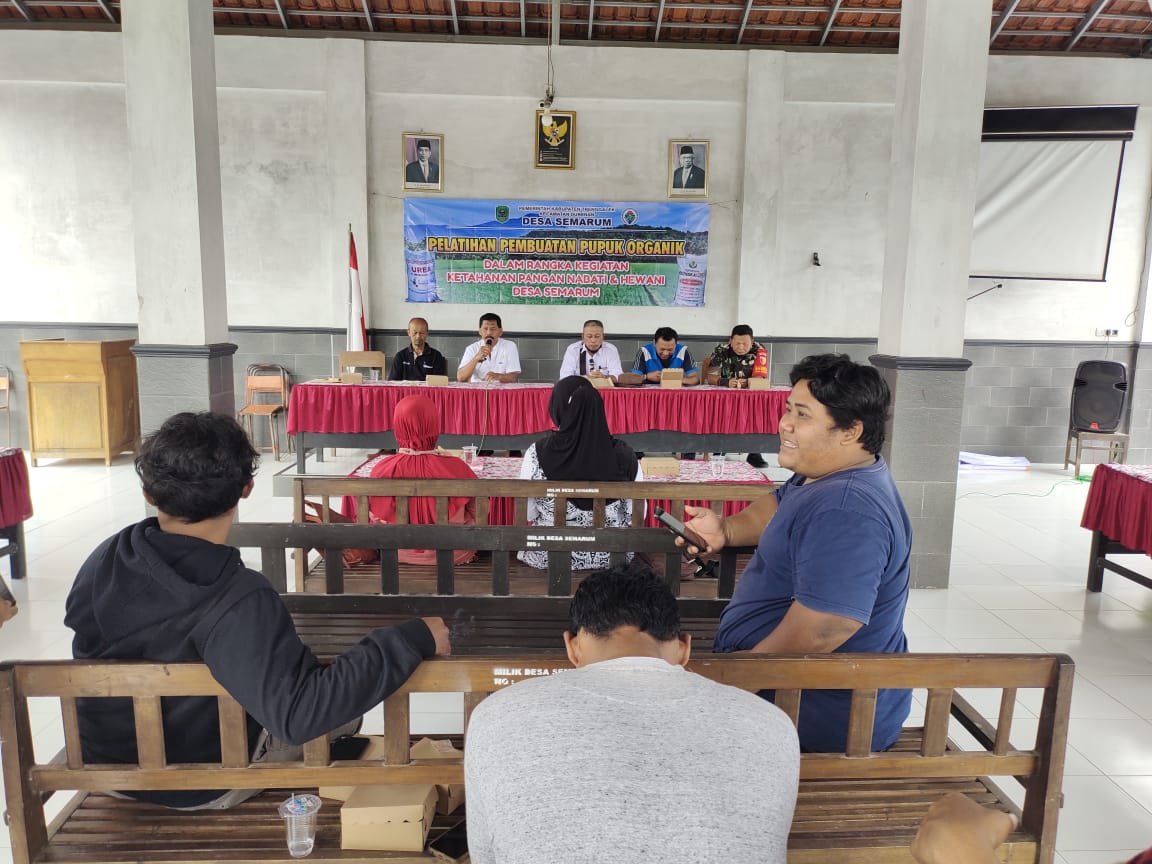Pelatihan,Dalam menunjang petani yang ada di desa semarum kecamatan durenan maka pemerintah desa semarum telah melaksanakan pelatihan kepada 2 kelompok tani yang ada di desa Semarum, 2 kelompok tani tersebut ada dari kelompok tani SEKAR ARUM dan kelompok tani BAHAGIA,Pelaksanaan Pelatihan di selenggarakan di Balai Desa Semarum pada hari Rabu 28 Desember 2022 yang di narasumberi oleh bapak Mulyono dari BPP Kecamatan durenan,Pembuatan pupuk organik tersebut berjalan lancar dan para peserta ikut melakukan pembuatan secara langsung dengan bahan-bahan yang sudah di sediakan sebelumnya,SID Desa Semarum.
