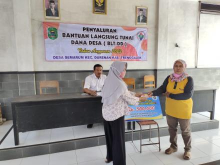 SEMARUM,Pada tanggal 18 mei 2022 pemerintah Desa Semarum telah menyelenggarakan penyaluran BLT-DD bulan Mei ,dengan jumlah KPM yang menerima adalah sebanyak 86 KPM, selama penyaluran nya Desa Semarum tidak mengalami perubahan jadi jumlah penerima tetap sama dengan jumlah yang lama.