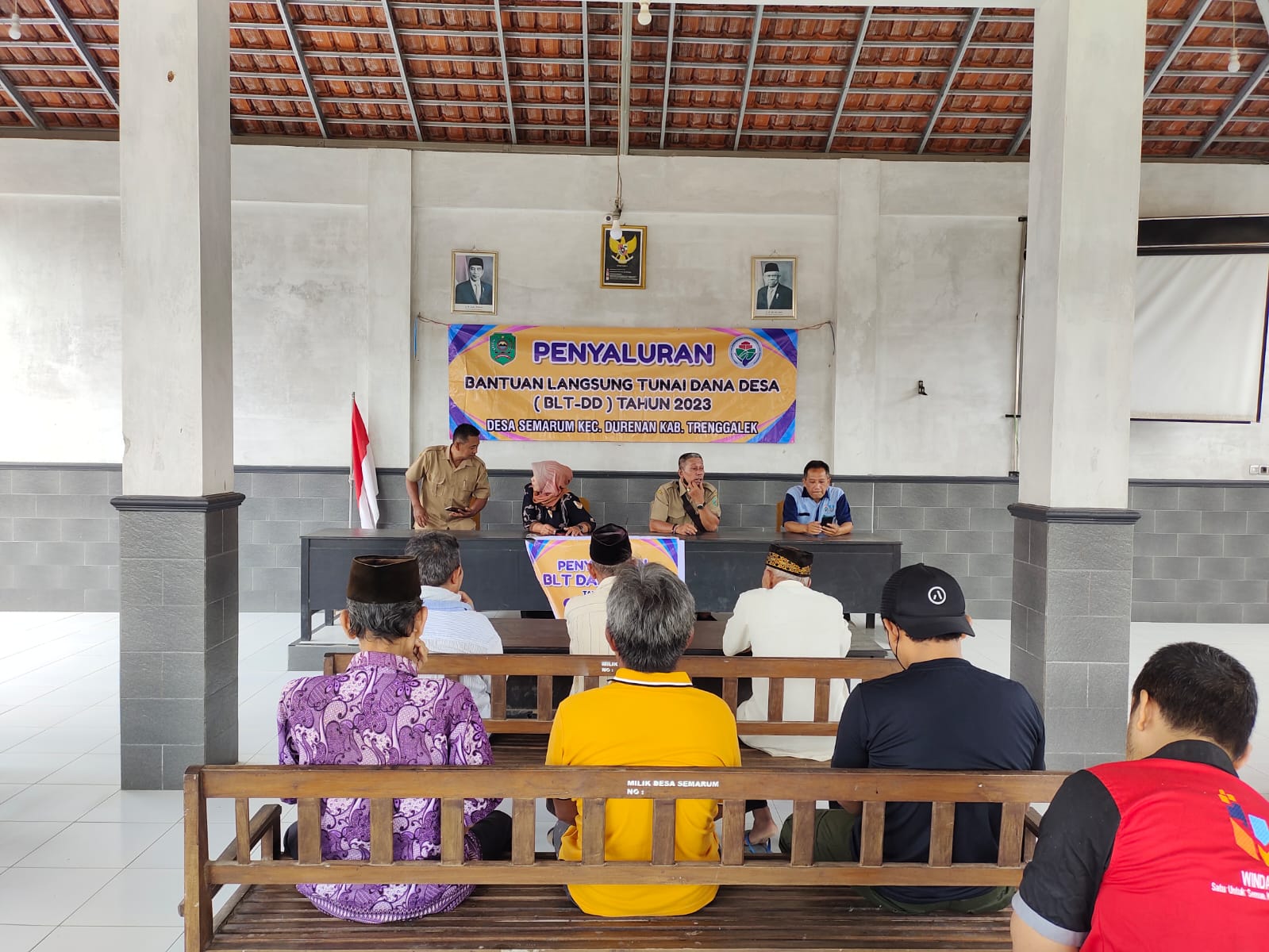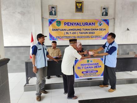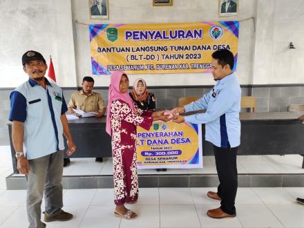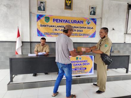 Pada Tanggal 16 Oktober 2023 hari senin pemerintah desa Semarum telah menyalurkan bantuan langsung tunai BLT-DD di balai desa semarum. pada bulan Oktober kali ini ada 1 pengganti yang meninggal di bulan september kemarin atas nama MUJINAH dan di ganti oleh SRI BIKAH jadi total penerima abantuan langsung tunai bulan Oktober tetap 45 KPM.