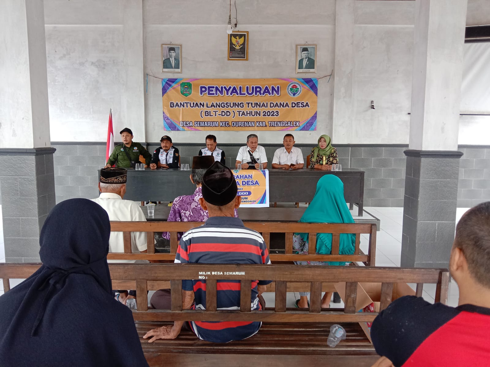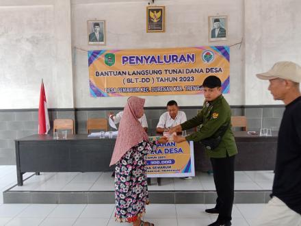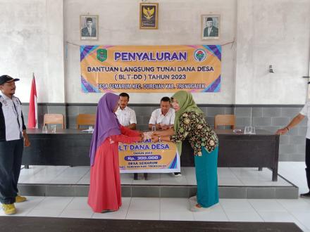 SEMARUM, dalam pelaksanaan keadaan mendesak desa pemerintah desa semarum telah menyelenggarakan penerimaan bantuan langsung tunai dana desa (BLT-DD) tahap akir atau di bulan desember tahun 2023. pada hari Rabu,6 desember 2023 pukul 08.00 pemerintah desa semarum telah melaksanakan penerimaan bantuan langsung tunai dana desa kepada masyarakat sesuai dengan ketentuan musyawarah desa tahap akir di tahun 2023 KPM yang menerima sebanyak 45 orang dengan jumlah anggaran Rp 13.500.000/bulan. masing2 orang mendapatkan Rp 300.000/bulan.