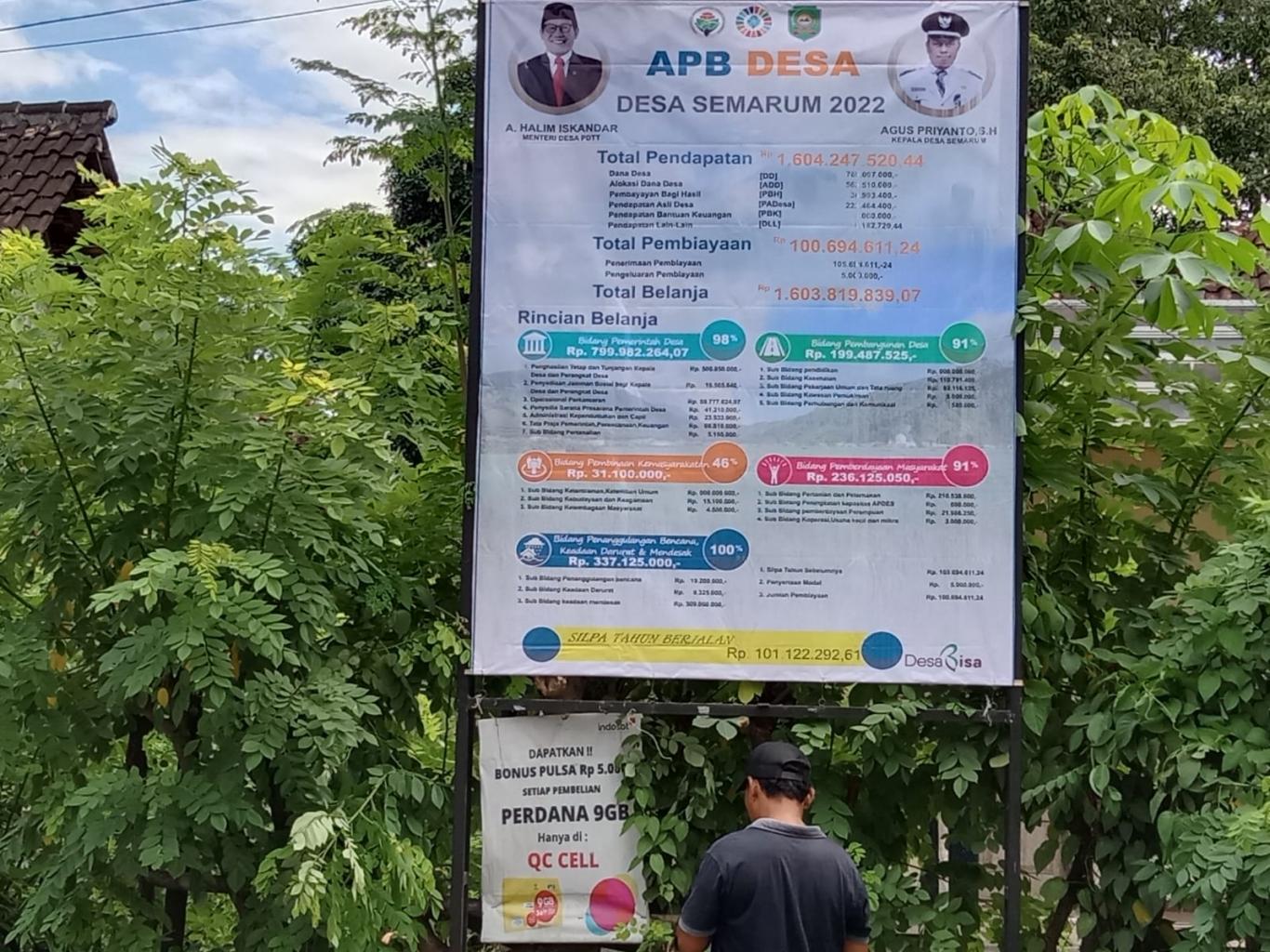 Untuk mewujudkan Desa Yang Transparasi Kepada Masyarakt,maka pemerintah desa Semarum telah melaksanakan pemasangan Bener APBDes tahun 2022 dan 2023 yang berada di beberapa titik yang ada di wilayah desa semarum.