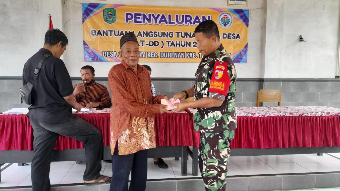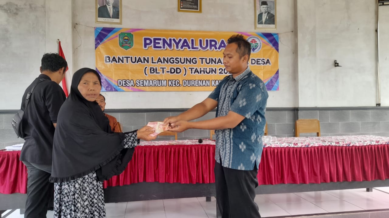 Untuk menunjang dan Melaksanakan Kegiatan Desa Semarum dalam pelaksanaan penanggulangan Bencana sub bidang tak terduga melalui BLT-DD desa Semarum, Desa Semarum Telah melaksanakan Penyaluran BLT-DD Bulan Januari - Maret dalam satu waktu, yang di laksanakan pada tanggal 16 maret 2023 di balai desa semarum. sesuai dengan musdes yang di laksanakan pada desember 2022 dan untuk memenuhi presentase penyaluran Dana Desa tahun anggaran 2023 maksimal 25% maka Desa Semarum telah Menyelenggarakan MUSDES penerimaan BLT-DD tahun 2023 sebanyak 45 KK yang tergolong tidak mampu dan penerima tersebut tidak masuk dalam penerimaan bantuan lain. maka dari itu Pemerintah Desa Semarum telah menetapkan sebanyak 45 KPM (Keluarga Penerima Manfaat) di tahun 2023 ini