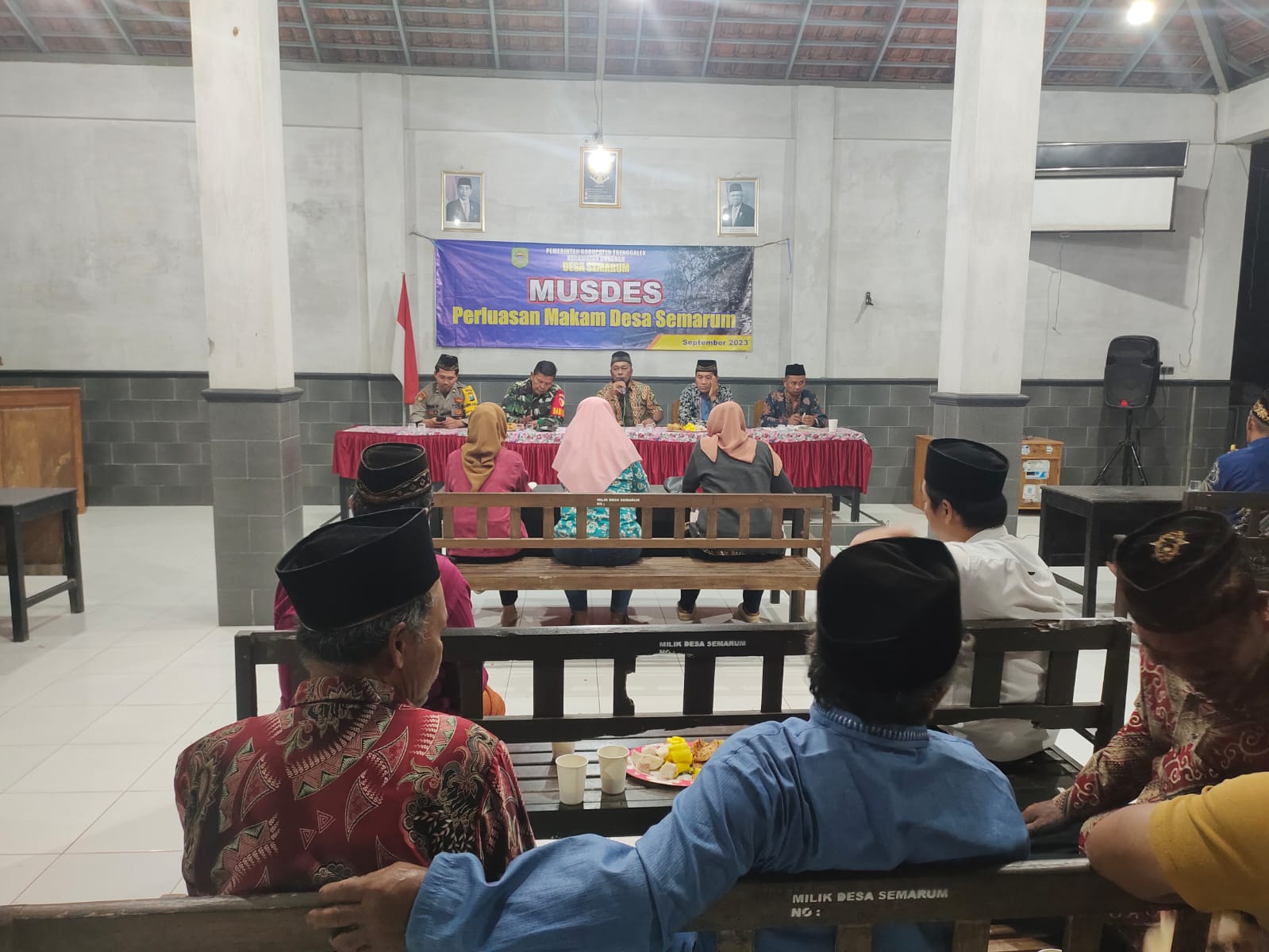 dalam musyawarah tersebut telah di hadiri oleh Bapak Kepala Desa Semarum Beserta Perangkatnya,Bapak BPD beserta Anggota,Bapak Babinsa dan Babhinkamtibmas, pendamping desa,LPM,Tokoh Agama,Tokoh Masyarakat,Ketua RT dan Rw. dalam musyawarah tersebut mendapatkan hasil yaitu pembentukan panitia pengadaan perluasan makam, untuk Ketua di pimpin oleh Bapak Abdul Rohman wakil K.kholil,dan selanjutnya dari unsur masyarakat.